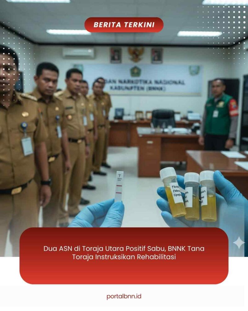 TORAJA UTARA//portalbnn.id – Badan Narkotika Nasional Kabupaten (BNNK) Tana Toraja mengonfirmasi dua Aparatur Sipil Negara (ASN) di lingkungan Pemerintah Kabupaten Toraja Utara positif mengonsumsi narkotika jenis sabu. Keduanya terjaring dalam razia mendadak di Kantor Kecamatan Kesu’, Selasa (23/12/2025).
